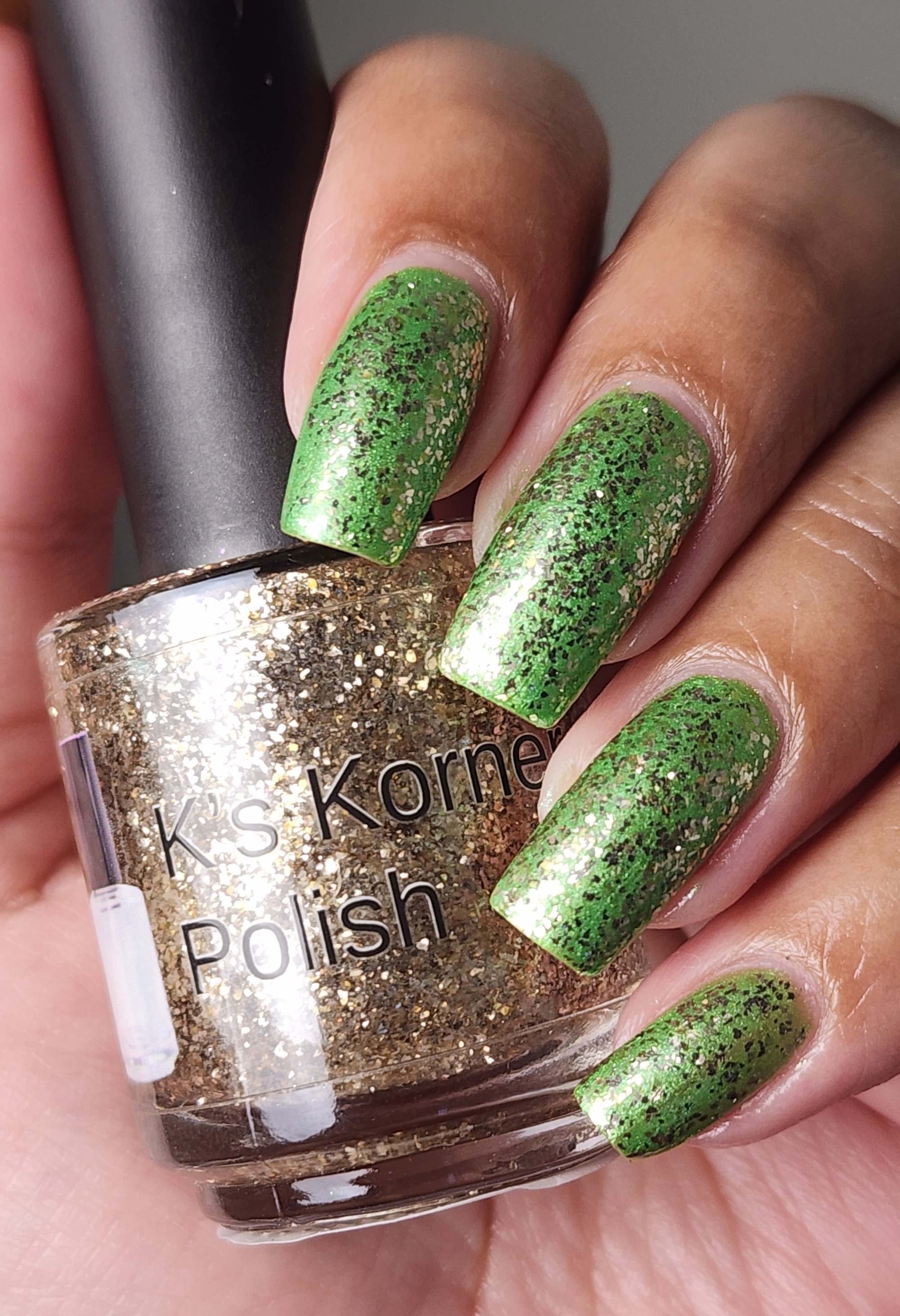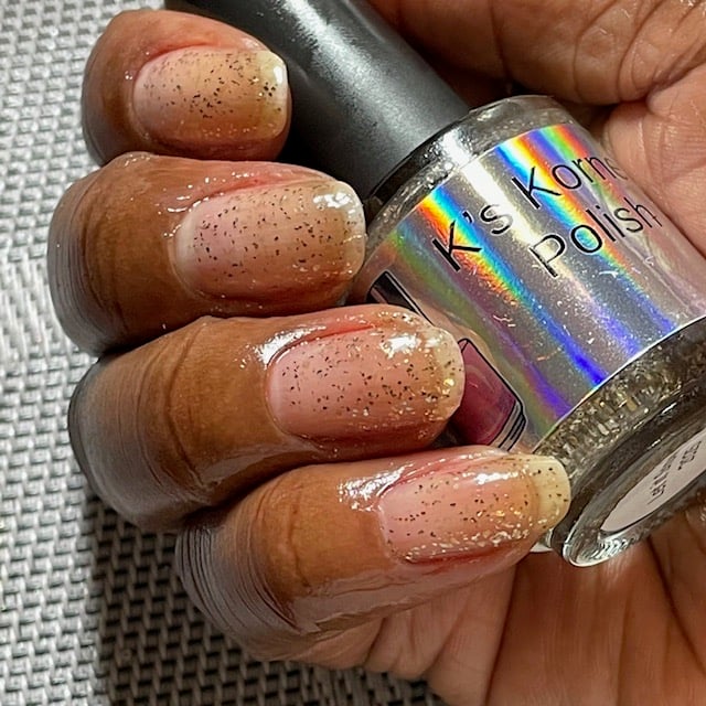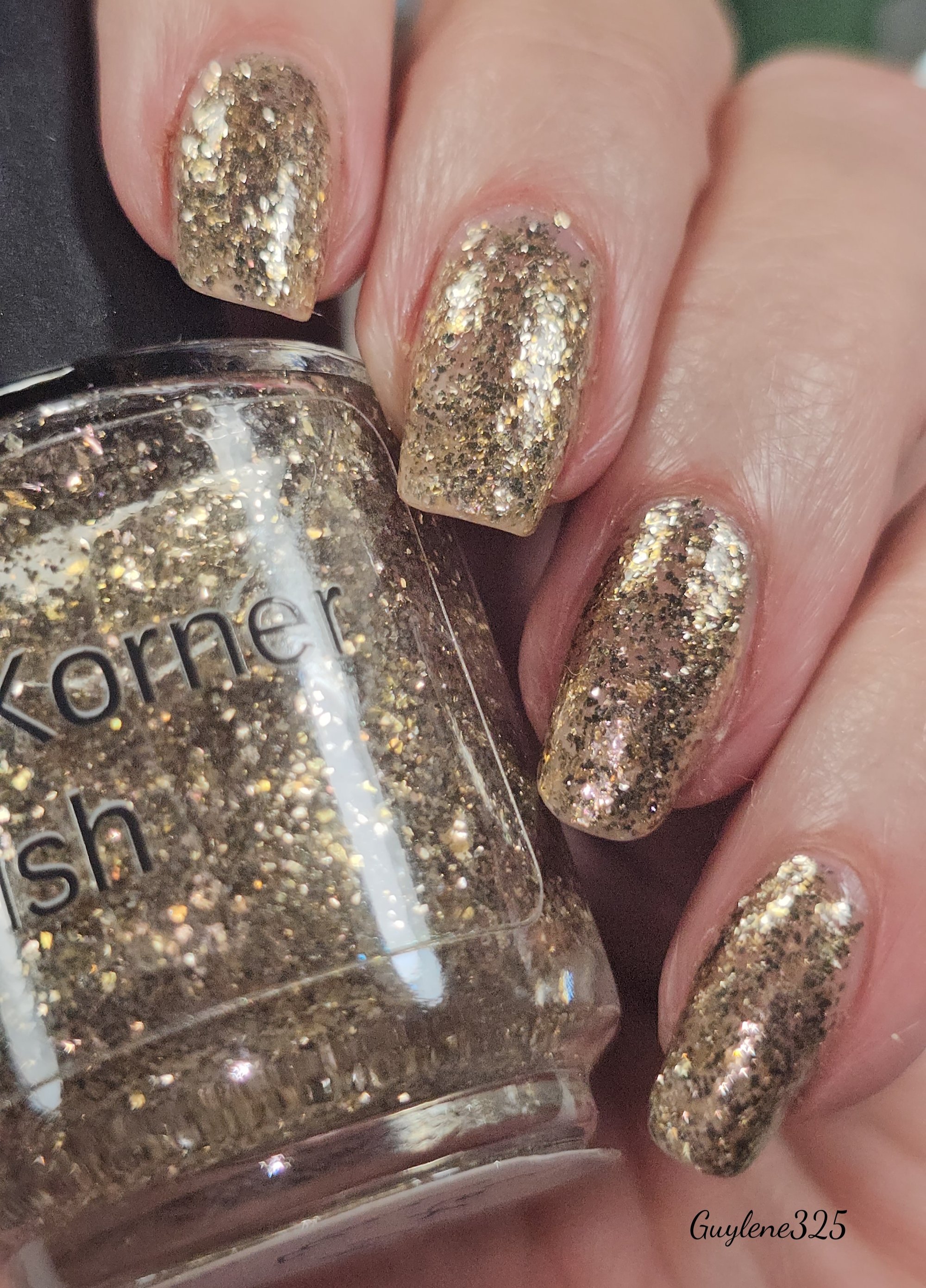 This gold and silver flakie will brighten any cloudy day with its shimmer and sparkle. It can be used alone, with two or three coats, or paired as a topper with your favorite color to add extra shine.